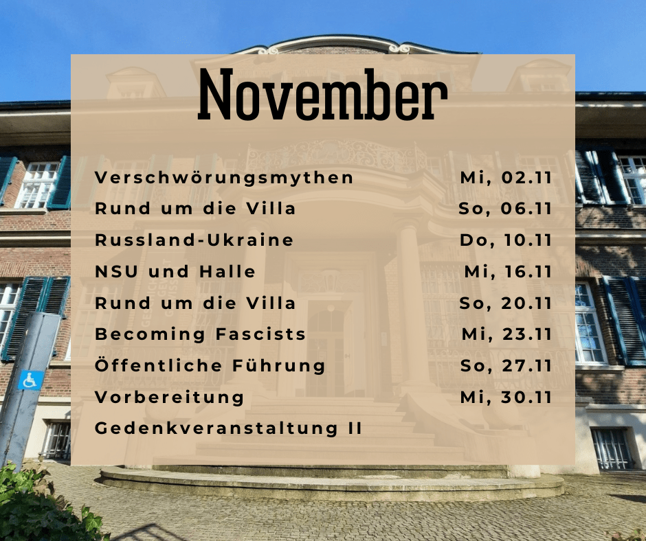 • Wer durch die Dauerausstellung geführt werden möchte, kann am 27. November zur ‚Villa‘ kommen