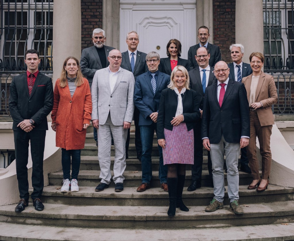 Am 30. November hatte die ‚Villa‘ hochrangigen Besuch: Polizeipräsidentinnen und Polizeipräsidenten der Präsidien des Landes Nordrhein-Westfalen kamen im Geschichtsort zu einer ihrer regelmäßigen Arbeitstagungen zusammen. Die Arbeitsgemeinschaft der 18 Polizeipräsidentinnen und Polizeipräsidenten trifft sich mit dem Innenministerium mehrfach jährlich zum Austausch über aktuell relevante Themen. Zugegen waren ebenfalls Oberbürgermeister Markus Lewe und Kulturdezernentin Cornelia Wilkens.
