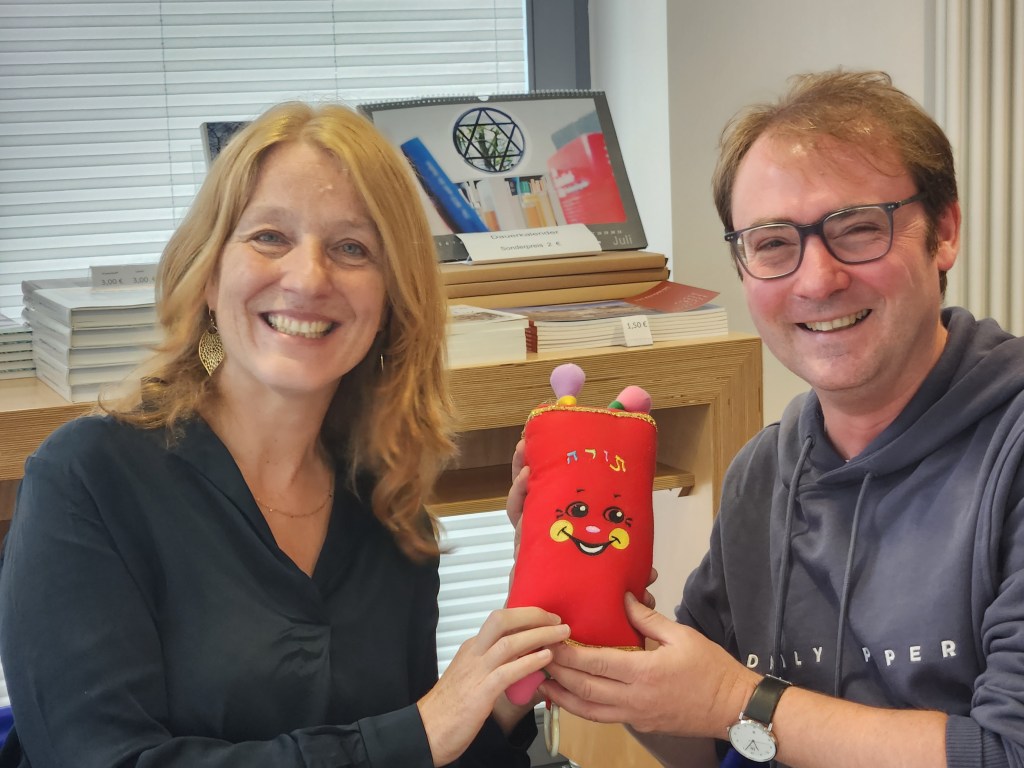 „Ist das Kitsch oder kann das weg?“ Die Frage sei häufig humorvoll gestellt worden während des Kuratierens der Ausstellung in Kooperation mit der Begegnungsstätte Alte Synagoge in Wuppertal, die Impulse gab. Der Gast aus Münster steuerte als Leihgabe von der Villa ten Hompel die einer Tora-Rolle nachempfundene Spieluhr bei, die Babys in den Schlaf wiege.