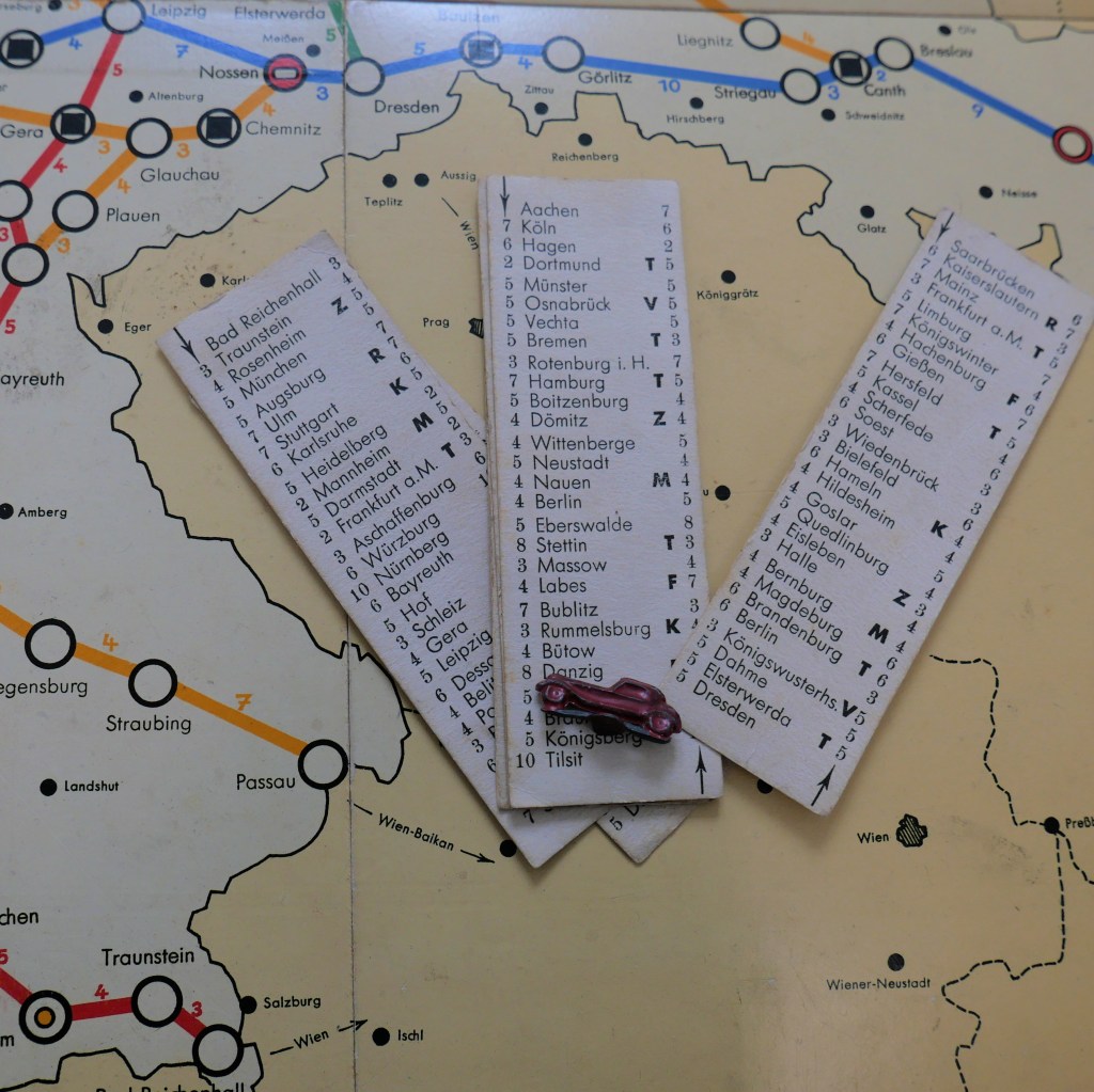 Einigen kommt folgende Aussage vielleicht bekannt vor: „Hitler hat nicht nur Schlechtes gemacht. Der hat auch Autobahnen gebaut!“ Hitler und die Autobahn – das gehört für viele in Deutschland anscheinend unweigerlich zusammen. Das sich bis heute hartnäckig haltende Narrativ ist auf erfolgreiche Propaganda zurückzuführen. Die Wirkung, die das populäre Großprojekt des nationalsozialistischen Deutschlands auf kommerzielle Medien hatte, lässt sich an unserem Fundstück des Monats April ein Stück weit ablesen. Es handelt sich um das Brettspiel „Auf der Reichsautobahn“, das um 1936 von Wilhelm Henck erfunden wurde und in Kassel erschien.