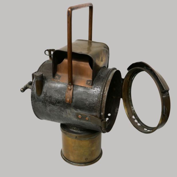 Das Fundstück des Monats Januar stellt einen Überrest dieses, auch aus heutiger Sicht, imposanten Imperiums dar. Die Leuchte wurde, wie sich mehreren Gravuren am Fuß entnehmen lässt, 1944 gefertigt. Vermutlich handelt es sich um eine Zugschlussleuchte, sie könnte aber auch zum Signalgeben von Rangierern verwendet worden sein. Einzelne Elemente wie der Griff sind nachträglich erneuert worden, andere Elemente, wie Schrauben im Innenraum der Lampe weisen hingegen deutliche Gebrauchsspuren auf.