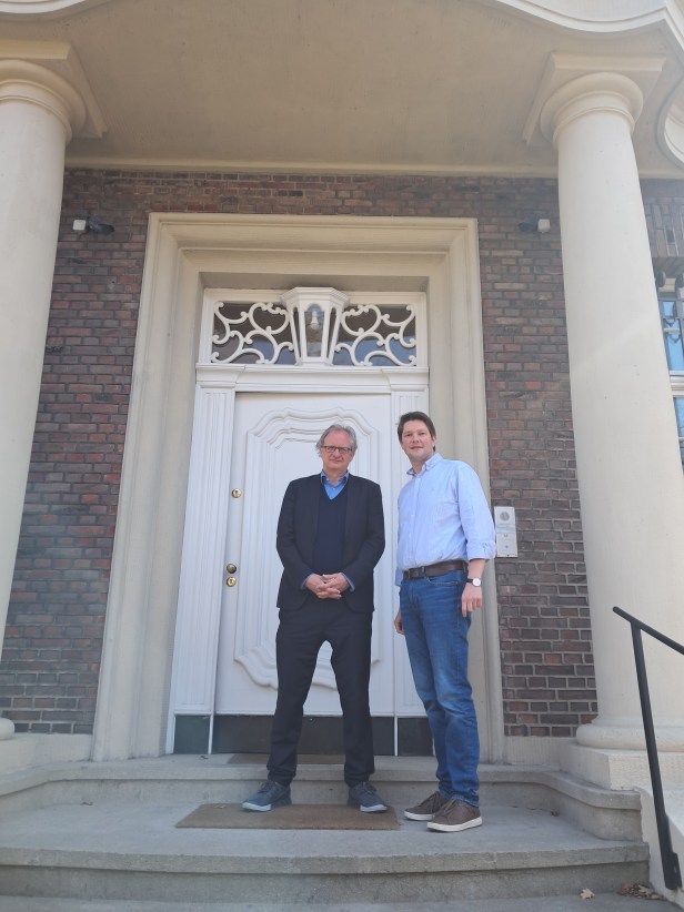 Tagespolitik von Trump bis Putin, aber auch tiefer gehende historische Zusammenhänge zu den transatlantischen Beziehungen sowie den laufenden Koalitionsverhandlungen in Deutschland analysierte jetzt der prominente Politikwissenschaftler und Volljurist Albrecht von Lucke, der als Redakteur der „Blätter für deutsche und internationale Politik“ in Münster zum Arbeitsbesuch war. Über 200 Gäste verfolgten in Präsenz und online seinen packenden Vortrag zur Frage „Demokratie oder Autoritarismus?“ im Oscar-Romero-Saal der Katholisch-Sozialen Akademie Franz Hitze Haus, wobei der Vorsitzende des gemeinnützigen Fördervereins für den Geschichtsort, Robert von Olberg (r.), ihn darüber hinaus mit dem Leiter Stefan Querl in der Villa ten Hompel empfing, wie es in einer Pressemitteilung des Fördervereins heißt. Mitveranstalter des Vortrags- und Diskussionsabends waren neben dem Förderverein auch das Evangelische Forum Münster, die Gesellschaft für Christlich-Jüdische Zusammenarbeit, der Volksbund Deutsche Kriegsgräberfürsorge in Westfalen-Lippe und die Regionalarbeitsgruppe Münsterland der parteiübergreifenden Vereinigung von Gegen Vergessen Für Demokratie. Judith Thamm gestaltete den Rundgang für den durch Funk und Fernsehen bekannten Gast.